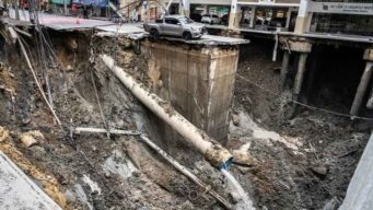 ニュー速 道路に突如”大きな穴” 車が落ちる様子も…深さ50mの道路陥没 現場では地下鉄の建設工事 タイ