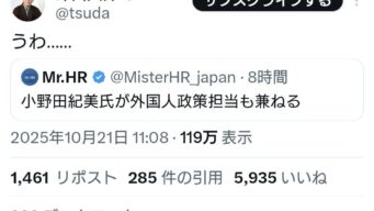 ニュー速 小野田紀美氏が外国人政策担当も兼ねる ←津田大介氏「うわ…」