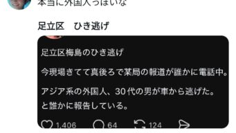 ニュー速 足立区轢き逃げ犯、日本人だった… 事件発生後の日本人の反応「犯人はクルドか中国人だろ!」