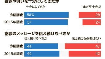 東亜 【朝日世論調査】戦争や植民地支配、謝罪や償い「十分にしてきた」58% 謝罪のメッセージ「伝え続ける必要はない」47%