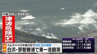 ニュー速+ 【津波情報】静岡県含む北海道太平洋東部から和歌山県沿岸まで津波警報(30日・午前9時40分 気象庁発表)
