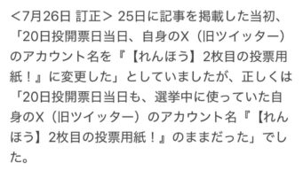ニュー速 蓮舫氏がXアカウント名を「投票日に変更」は誤報 公選法違反疑惑の記事で産経新聞が訂正