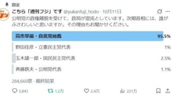 ニュー速 産経新聞、ツイッターアンケートで記事を作る「高市氏支持が95%」