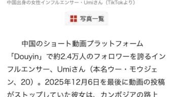 ニュー速 中国の美人インフルエンサー、わずか1か月でカンボジアの路上で変わり果てた姿で見つかる