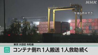 ニュー速+ 大田区 東京港のコンテナ倒れ2人下敷き 大雨影響の可能性