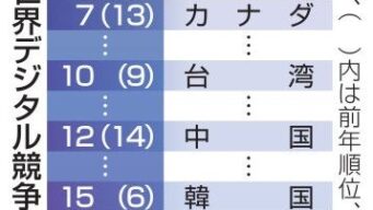 ニュー速+ 【世界デジタル競争力ランキング】日本の「デジタル力」は30位 2年連続上昇も最低レベル