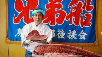 芸スポ 【演歌】鳥羽一郎サブスク解禁記念マグロ解体ショー、巨大な本マグロを豪快に捌いて寿司を振る舞う