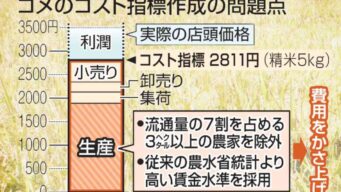 ニュー速+ 「コメの原価計算」これでいい? 国内流量の7割占める大規模農家の数字を外させた、JA全農の理屈は