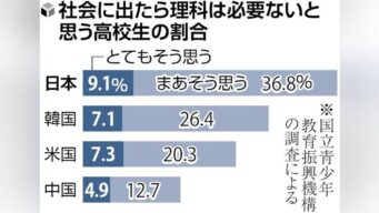 東亜 「社会に出たら理科は不要」…日本の高校生が45%で最多、日米中韓の4か国比較で「理科離れ」深刻