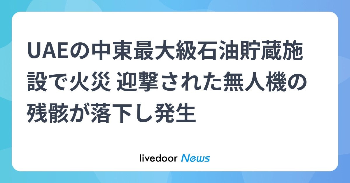 UAEの中東最大級石油貯蔵施設で火災 - ライブドアニュース【イスタンブール共同】アラブ首長国連邦(UAE)東部フジャイラ当局は3日、中東最大級の石油貯蔵施設がある産業地区で、迎撃された無人機の残骸が落下し火災が起きたと発表した。火災は鎮圧したとしている。news.livedoor.com - 2 : 2026/03/03 19:06:20 bdw5R